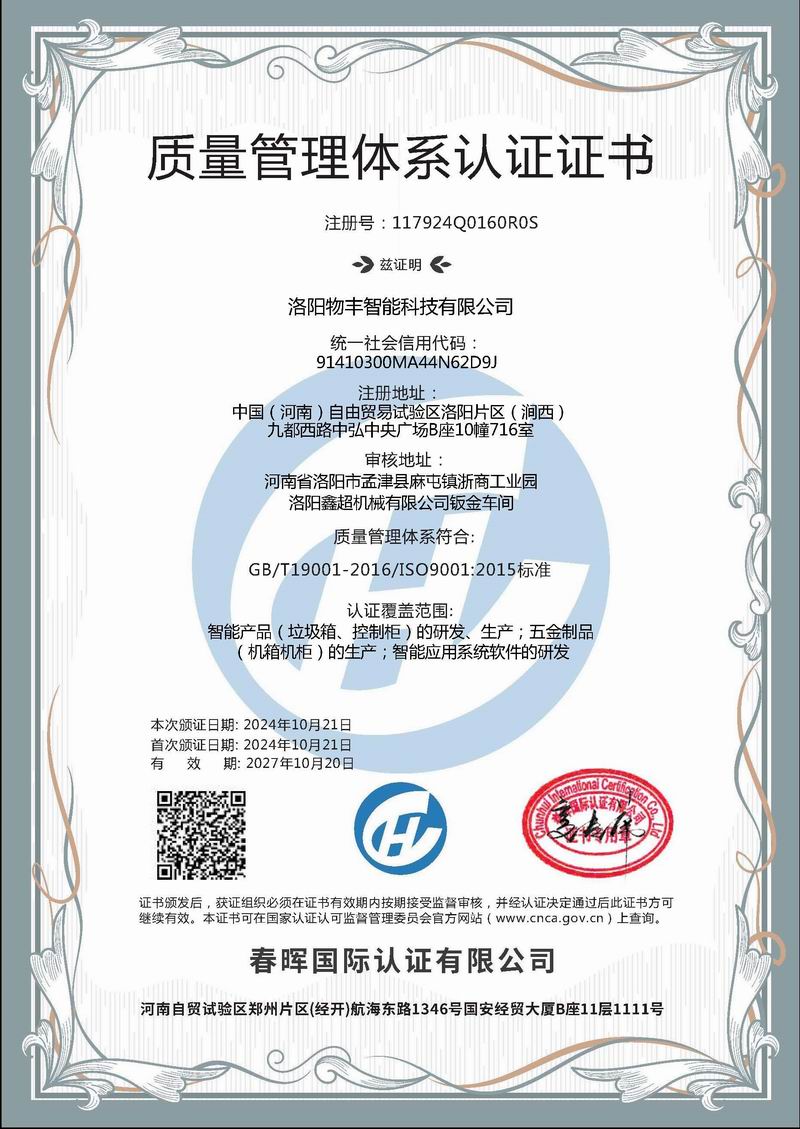 質量管理體系認證證書